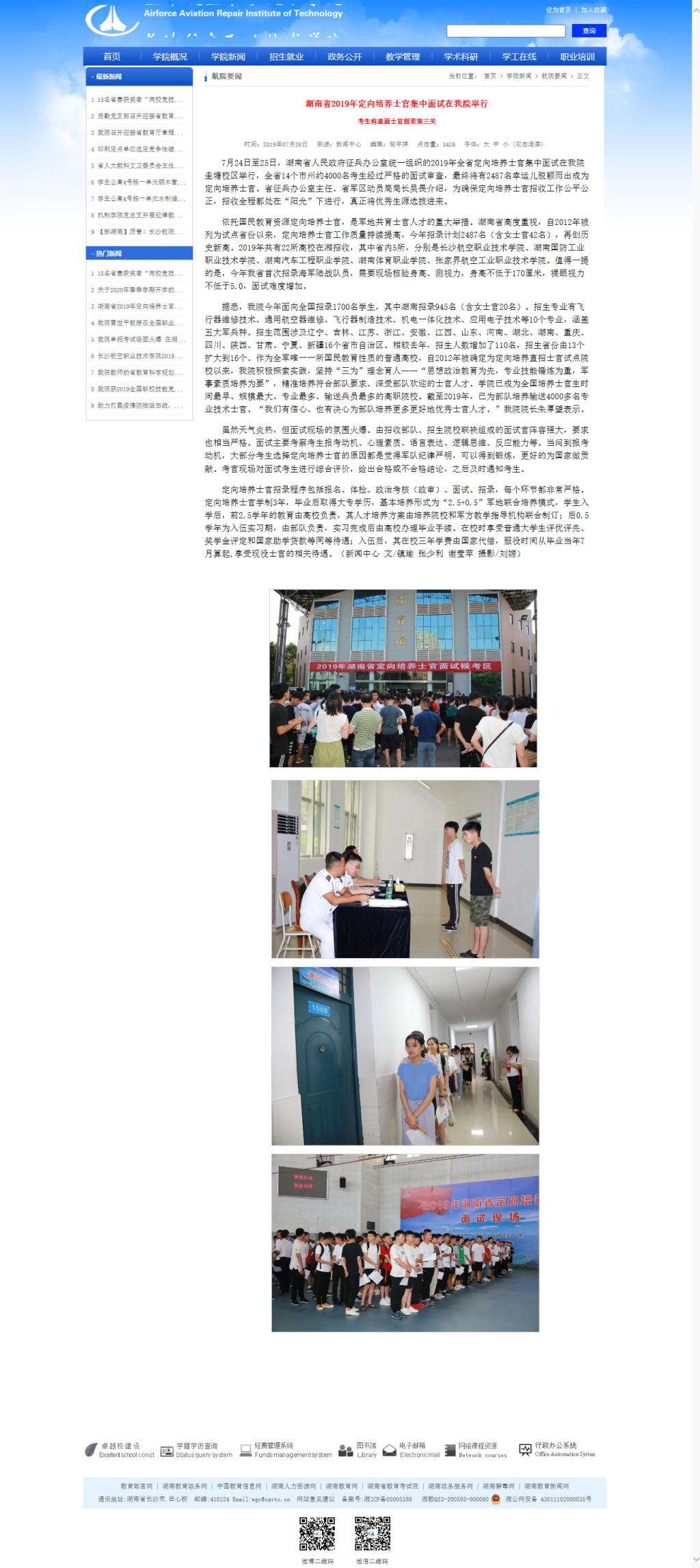 湖南省2019年定向培养士官集中面试在我院举行